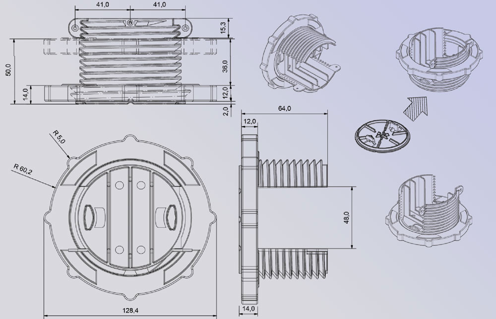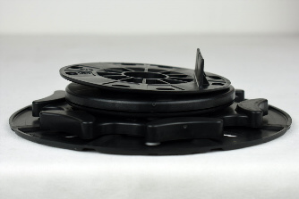 The Low-Profile 1836 pedestal is a specially designed support for use in areas where low threshold heights are encountered. Each support is composed of a threaded head section, with 4 removable tabs (2 mm or 4mm in width for paver or tile spacing), or with a fixing flange with screw slot used for attaching the support to a wooden joist for flooring or deck construction.